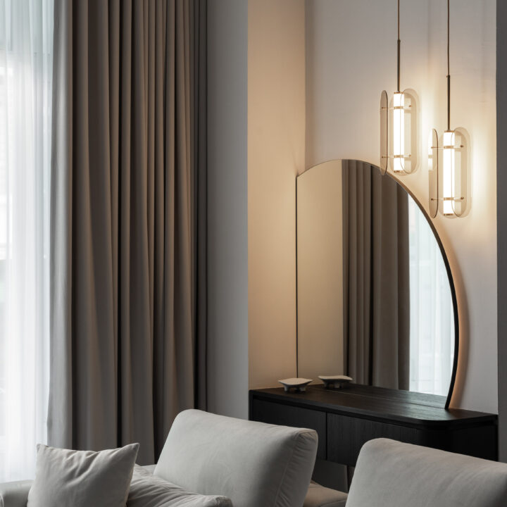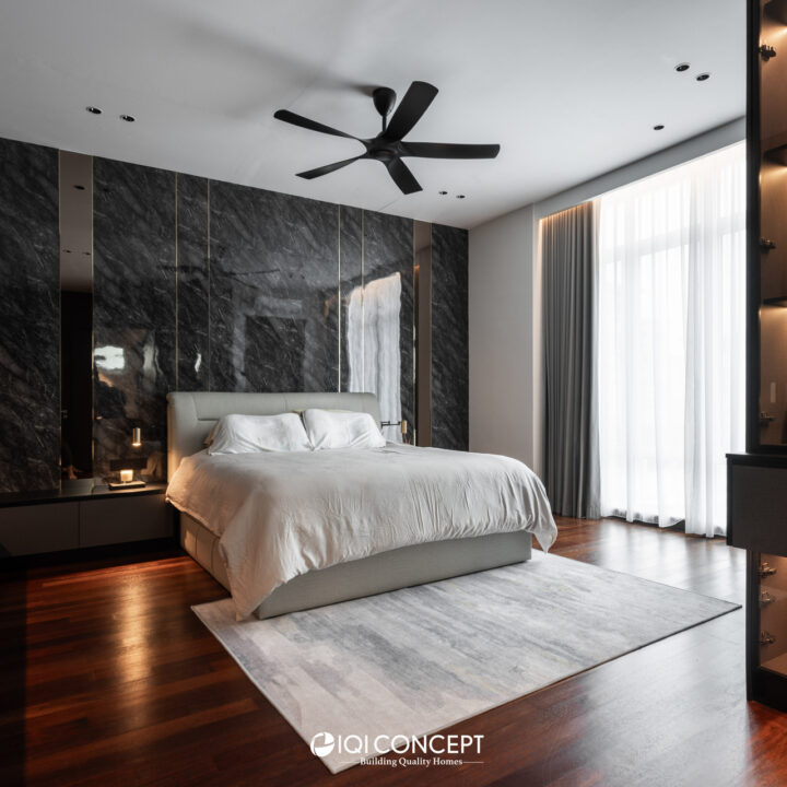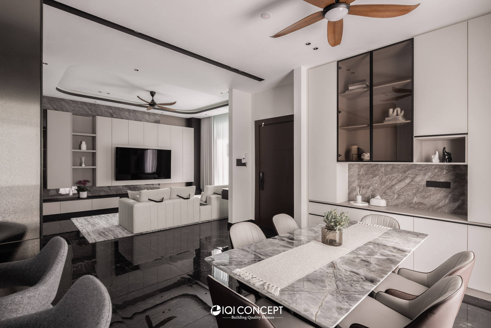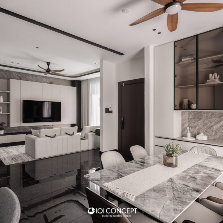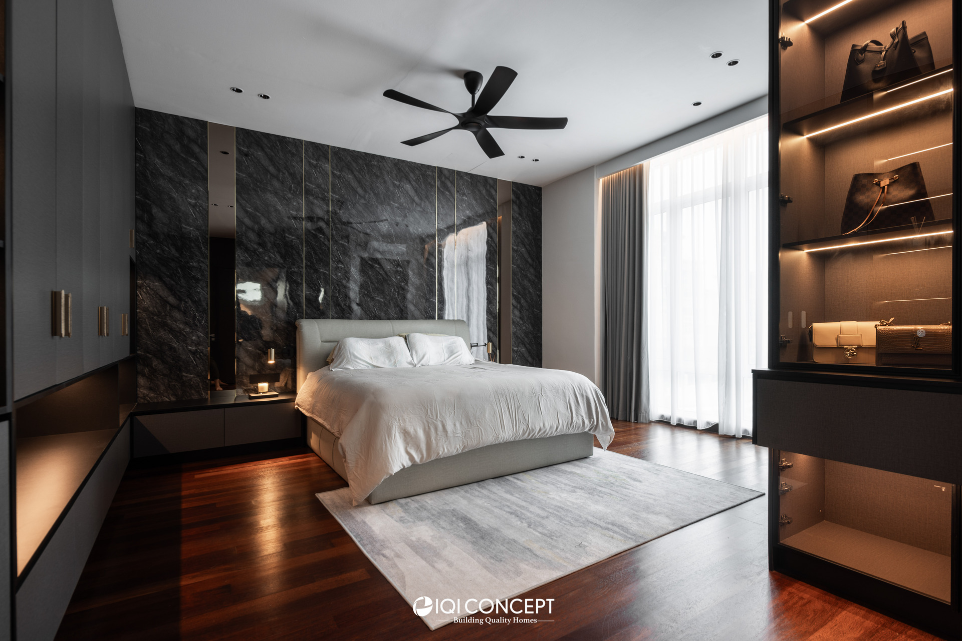 This Modern Luxury residence showcases the striking elegance of black marble veins across the living, bedrooms, and bathrooms, balanced with lighter tones and softened by warm ambient lighting. The result is a refined yet welcoming atmosphere, designed with both sophistication and family living in mind.