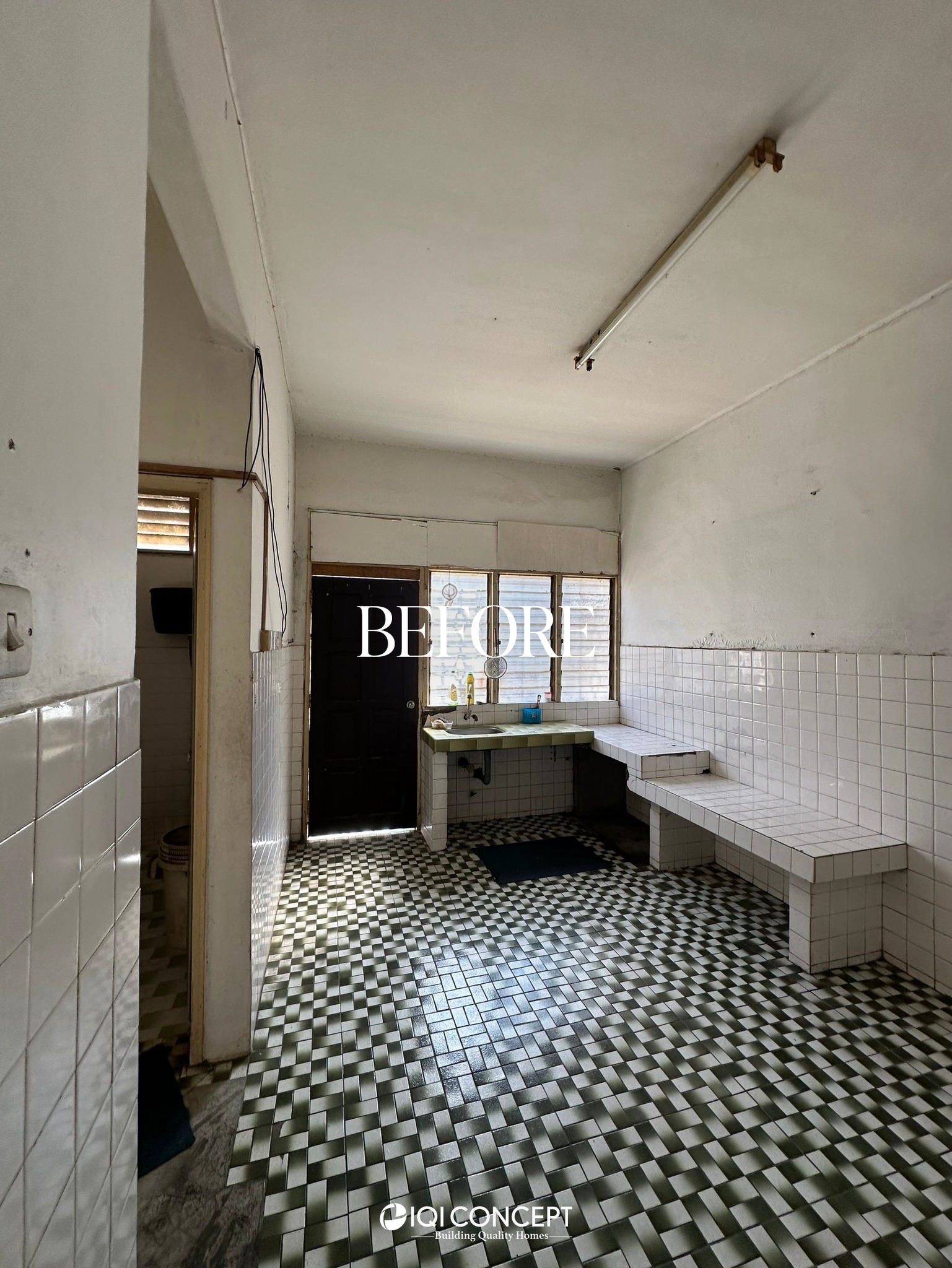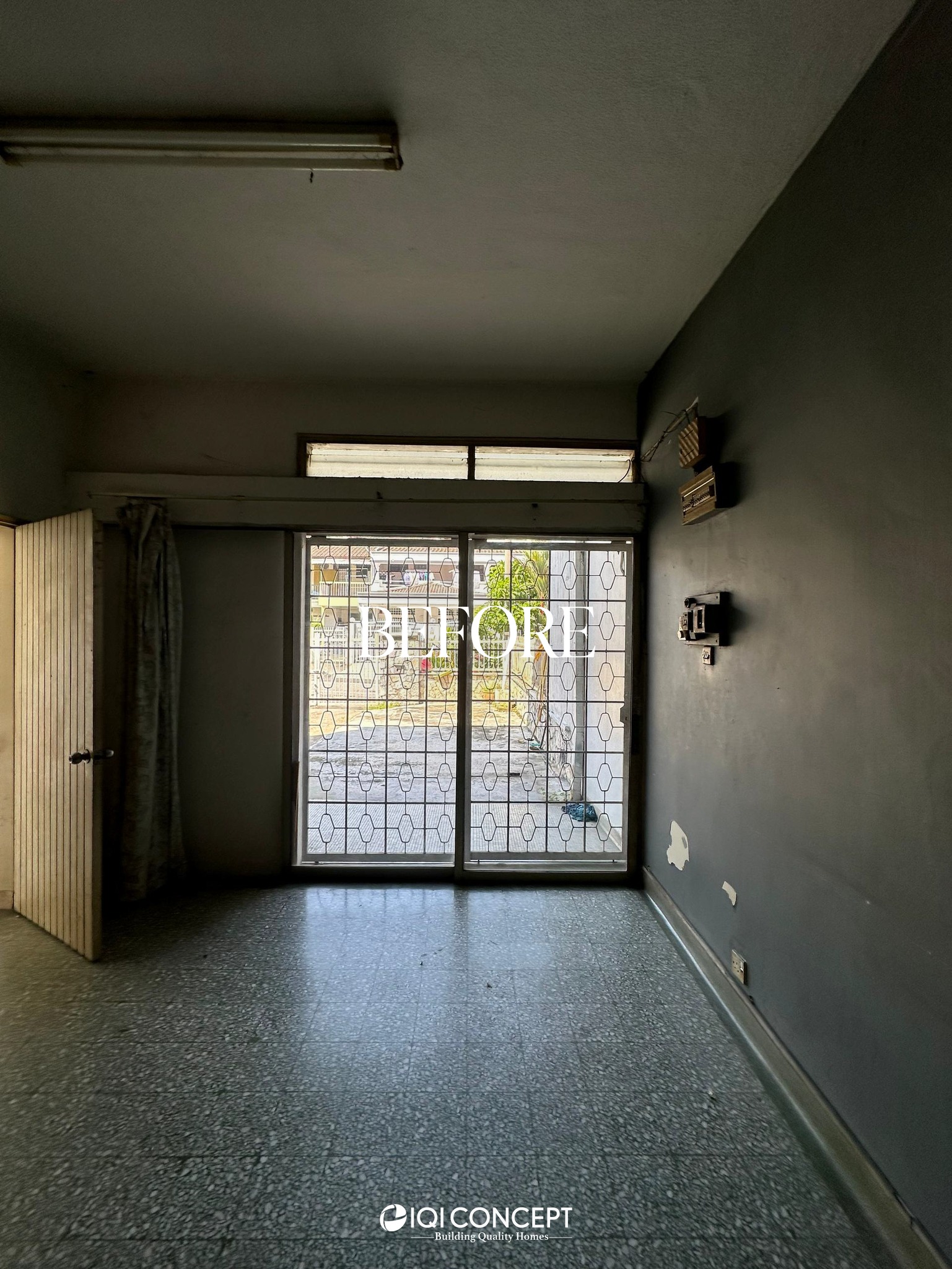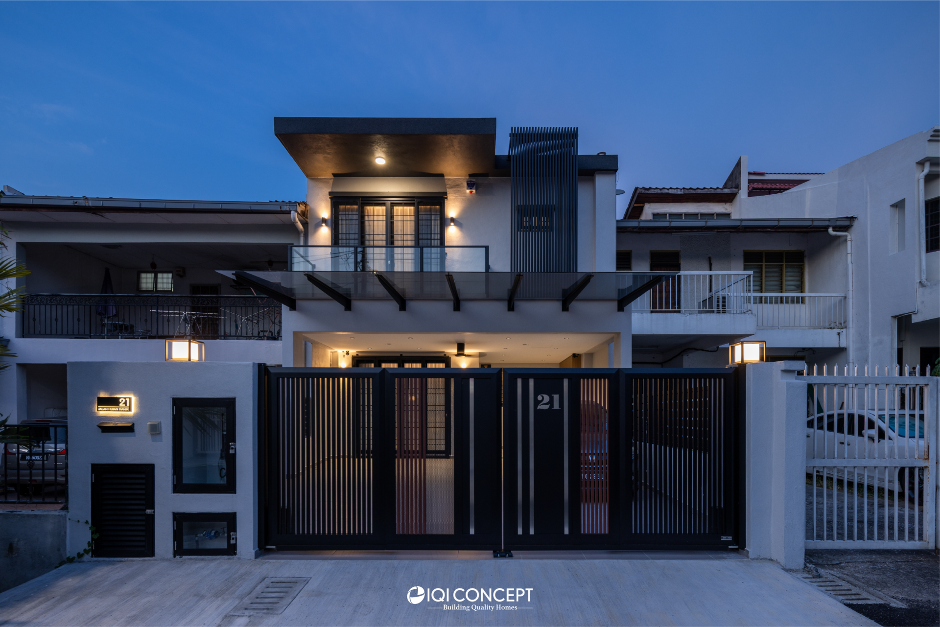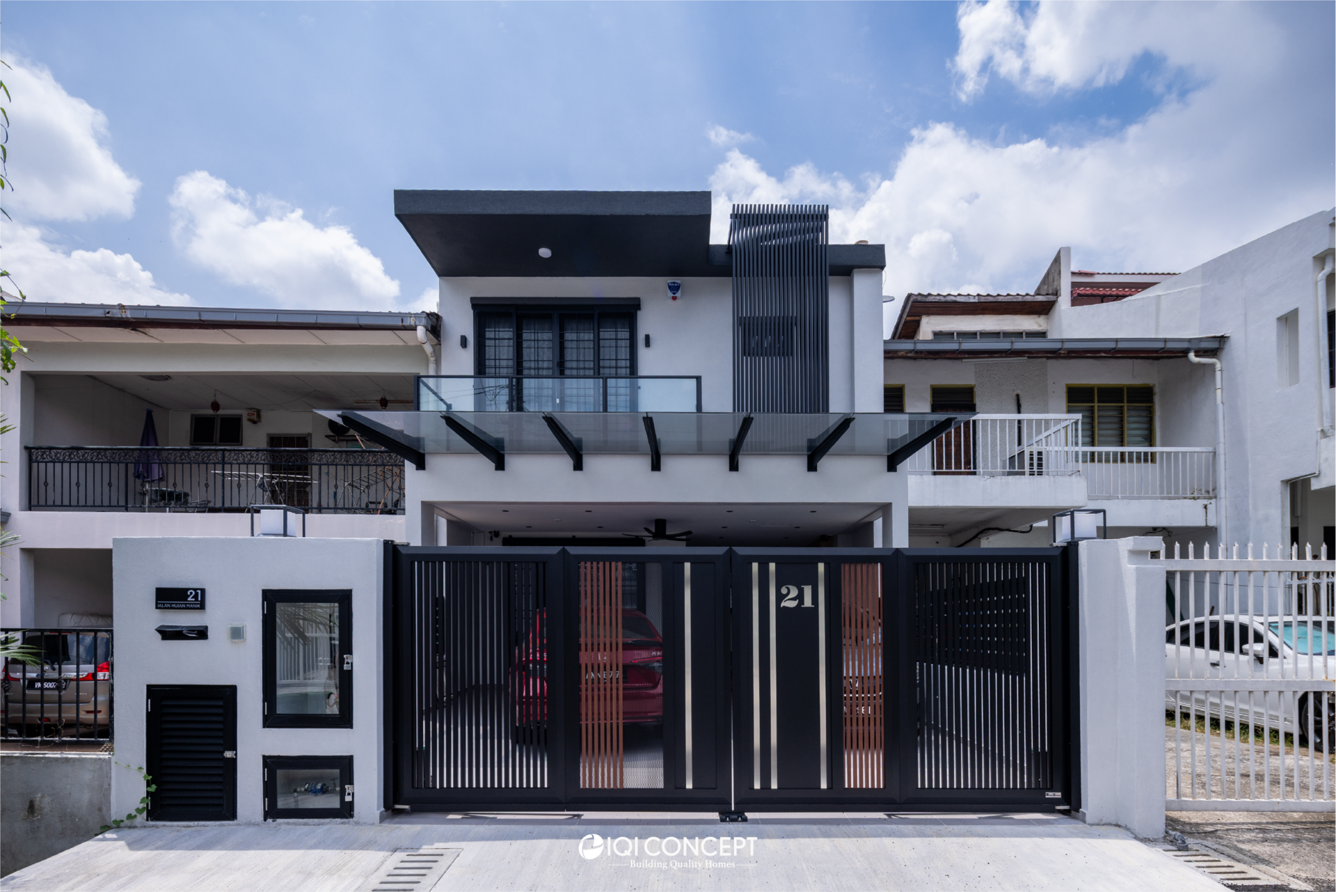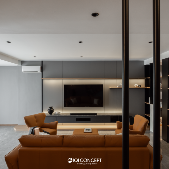The kitchen was upgraded with a grey-wood palette and contemporary cabinetry, complementing the open layout, while the powder room features half-height retro wall tiles for a cozy yet spacious feel. On the exterior, the first-floor façade was refreshed with vertical louvers that harmonize with the autogate’s design, and the shoe rack area features stylish black retro tiles, adding both function and visual appeal. The result is a mature yet inviting transformation, darker in tone yet balanced with warmth and tailored for modern living while honoring the charm of a long-standing home.